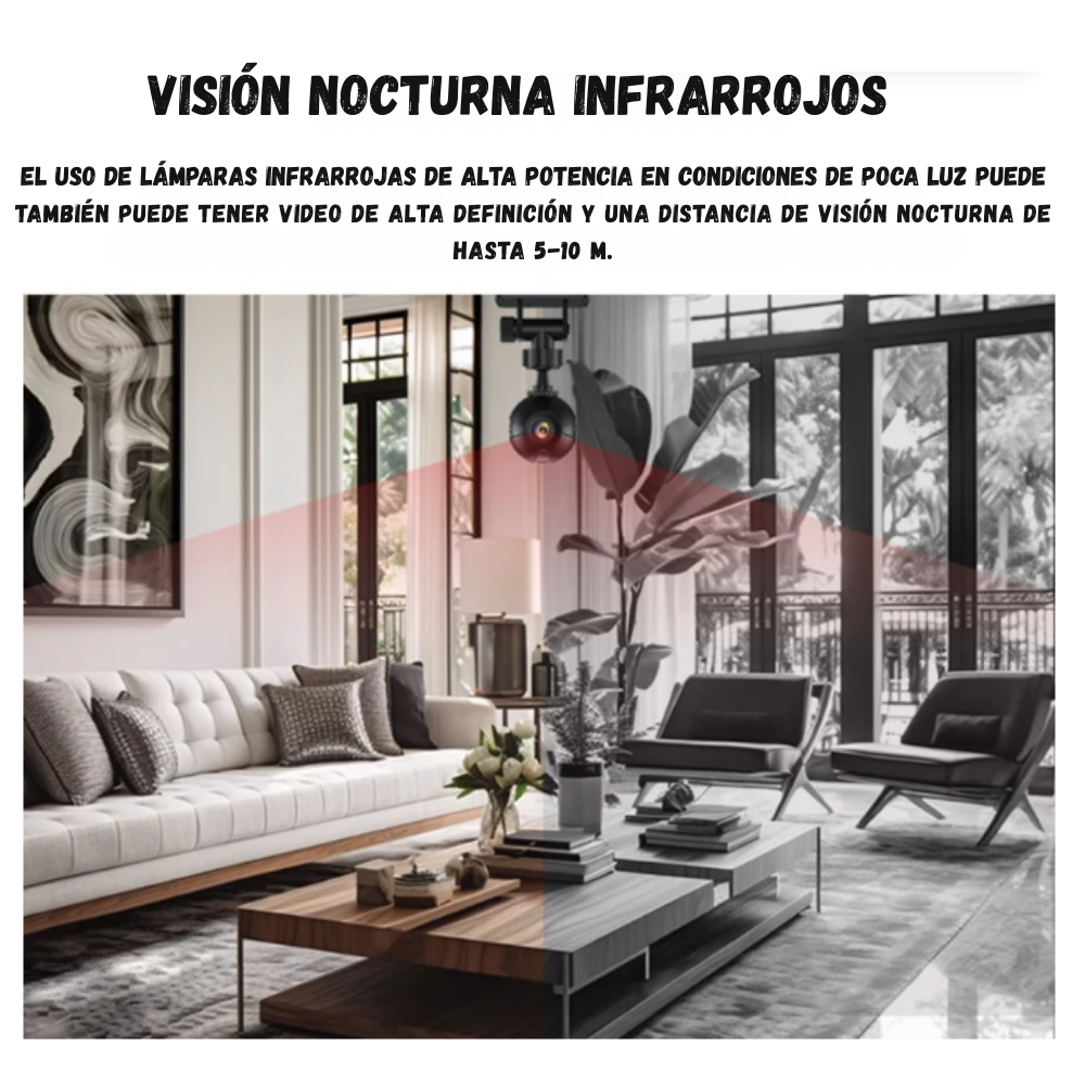 Visión nocturna por infrarrojos: El uso de lámparas de infrarrojos de alta potencia, las condiciones de oscuridad también pueden obtener video de alta definición, la distancia de visión nocturna es de hasta 5-10m