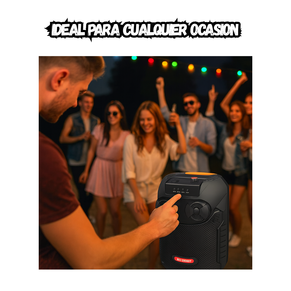 Lleva tu música a donde quieras con el Parlante Portátil MS-2030BT, un modelo compacto pero sorprendentemente potente, ideal para el hogar, reuniones, picnics, entrenamientos, o cualquier momento donde quieras un sonido claro y envolvente.