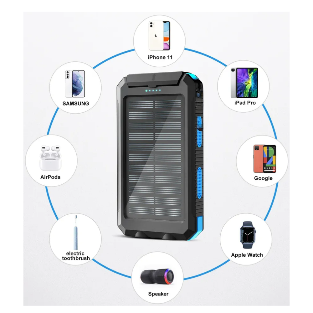 Power Bank Solar con Brújula, Linterna Dual LED 20.000mAh